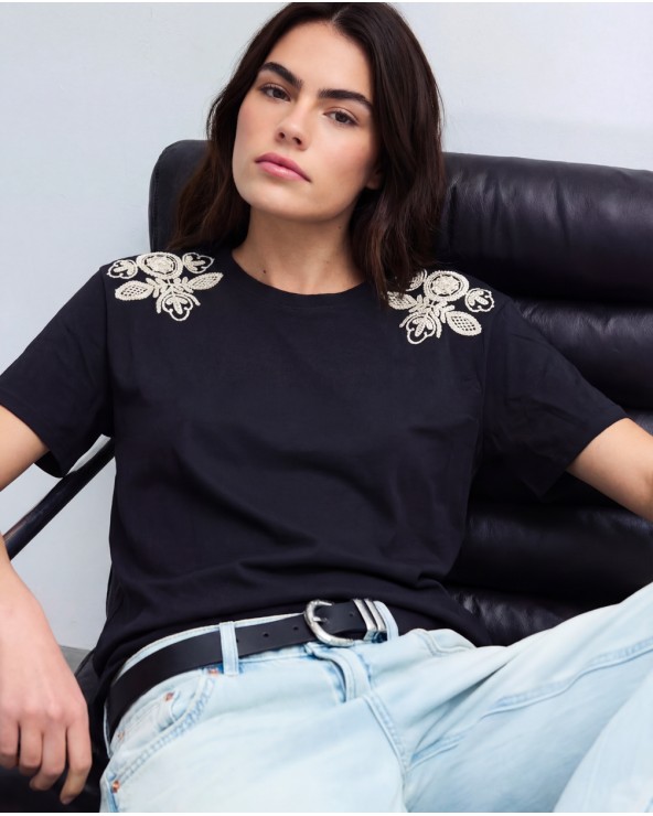 Nuovo Quick view Maglia Con Applicazioni... T-shirt con collo rotondo e maniche corte. Dettaglio di ricami sulle spalle. COMPOSIZIONE Viscosa 85%, Polyestere 15% Lista dei desideri 14,95 €