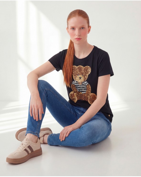 Nuovo Quick view T-Shirt 252/31325 T-shirt con collo rotondo e maniche corte. Dettaglio di stampa sul davanti. COMPOSIZIONE Cotone 95%, Elastico 5% Lista dei desideri 14,95 €