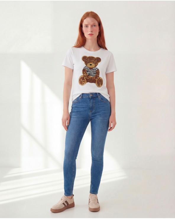 Nuovo Quick view Maglia Con Stampa 15904/99325 T-shirt con collo rotondo e maniche corte. Dettaglio di stampa sul davanti con applicazione di strass. COMPOSIZIONE Cotone 95%,... Lista dei desideri 16,95 €