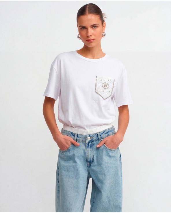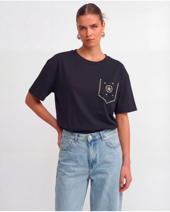 Nuovo Quick view Maglia Con Taschino... T-shirt con collo rotondo e maniche corte. Dettaglio di finto taschino sul petto con ricami e strass. COMPOSIZIONE Cotone 95%,... Lista dei desideri 16,95 €