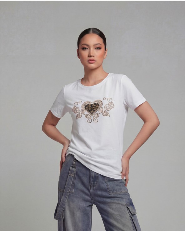 Nuovo Quick view Maglia Con Stampa A392/98200 T-shirt con collo rotondo e maniche corte. Dettaglio di applicazione di strass. COMPOSIZIONE Cotone 95%, Elastico 5% Lista dei desideri 14,95 €