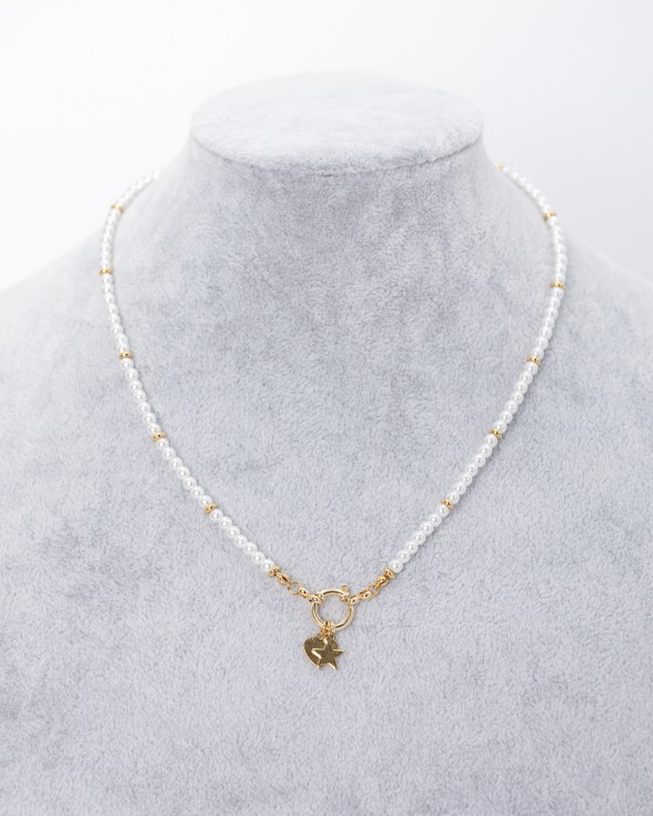 Quick view Collana Perline 6880/39150 Collana con perline e dettagli metallici. Chiusura con anello a molla. Presenza di due charms a forma di stella e cuore.... Lista dei desideri 9,95 €