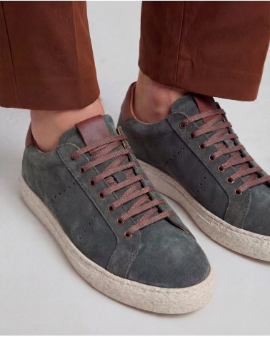 Sneakers con lacci dotate di elementi con materiali e colori a contrasto sul tallone e sulla tomaia. Gambetto con sette passanti. Soletta in pelle. Suola in gomma che garantisce la massima leggerezza e comfort.