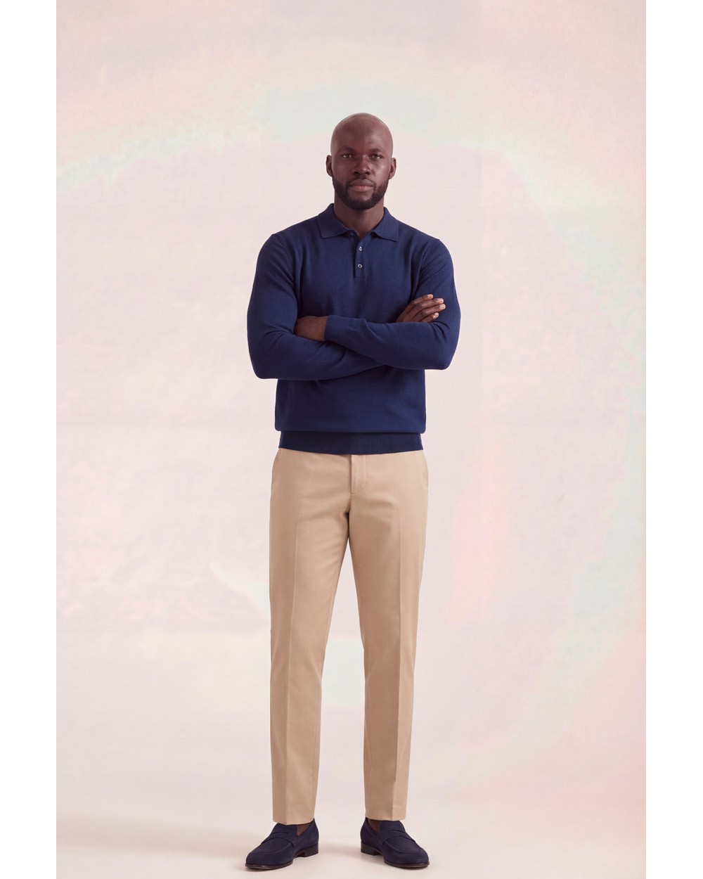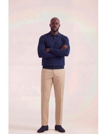 Polo con colletto a revers e maniche lunghe. Finiture a coste. Chiusura frontale con due bottoni.