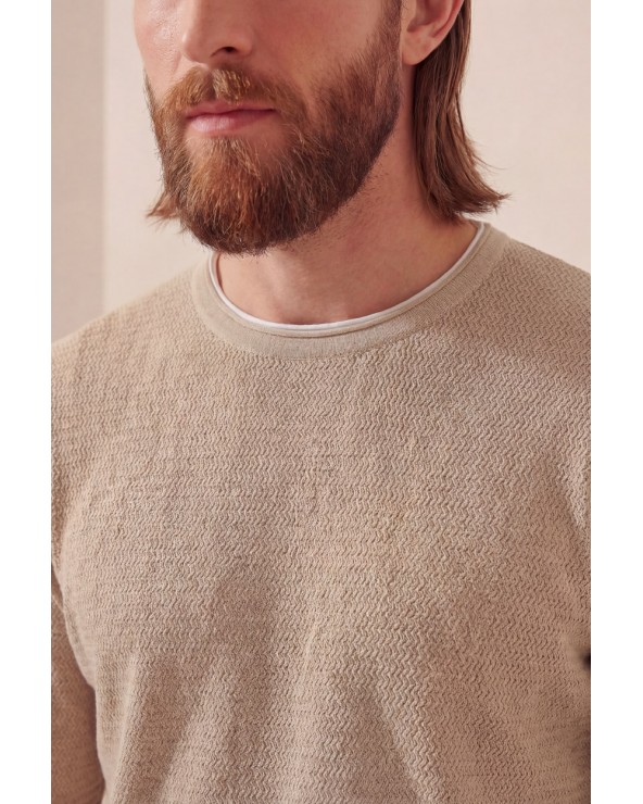 Pullover con collo rotondo e maniche lunghe. Finiture a coste. Dettaglio di collo a contrasto.