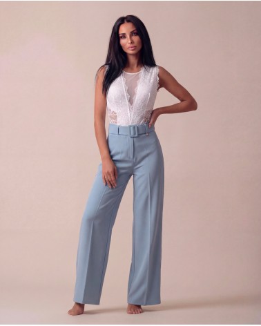 Pantaloni a palazzo. Vita elasticizzata. Dettaglio di cintura inclusa.