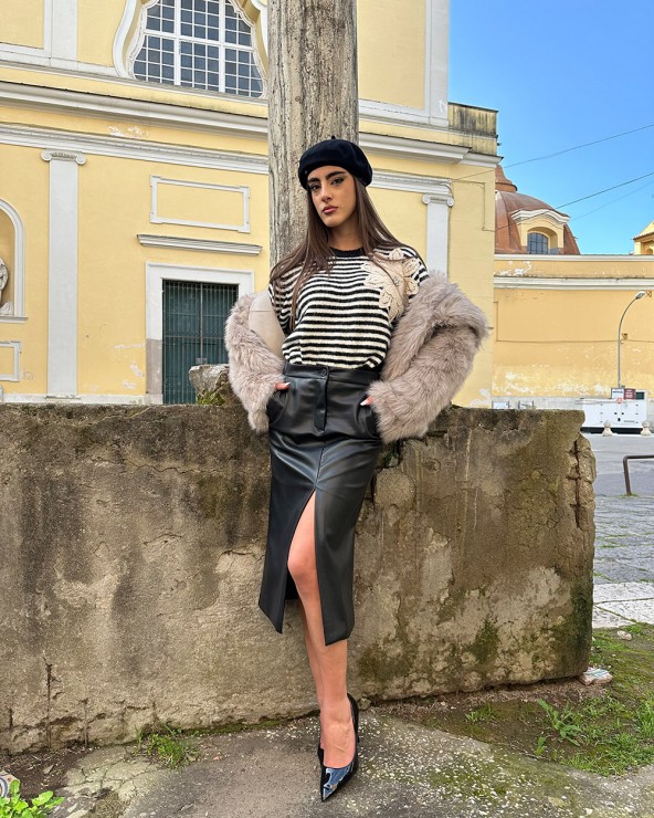 Pantaloni a palazzo a vita alta. Chiusura frontale con bottone e cerniera. Orlo con risvolto. Tasche laterali. Cintura in ecopelle inclusa....