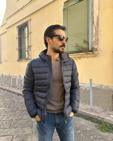Piumino con cappuccio non removibile. Chiusura frontale con cerniera. Tasche sui fianchi con cerniera.