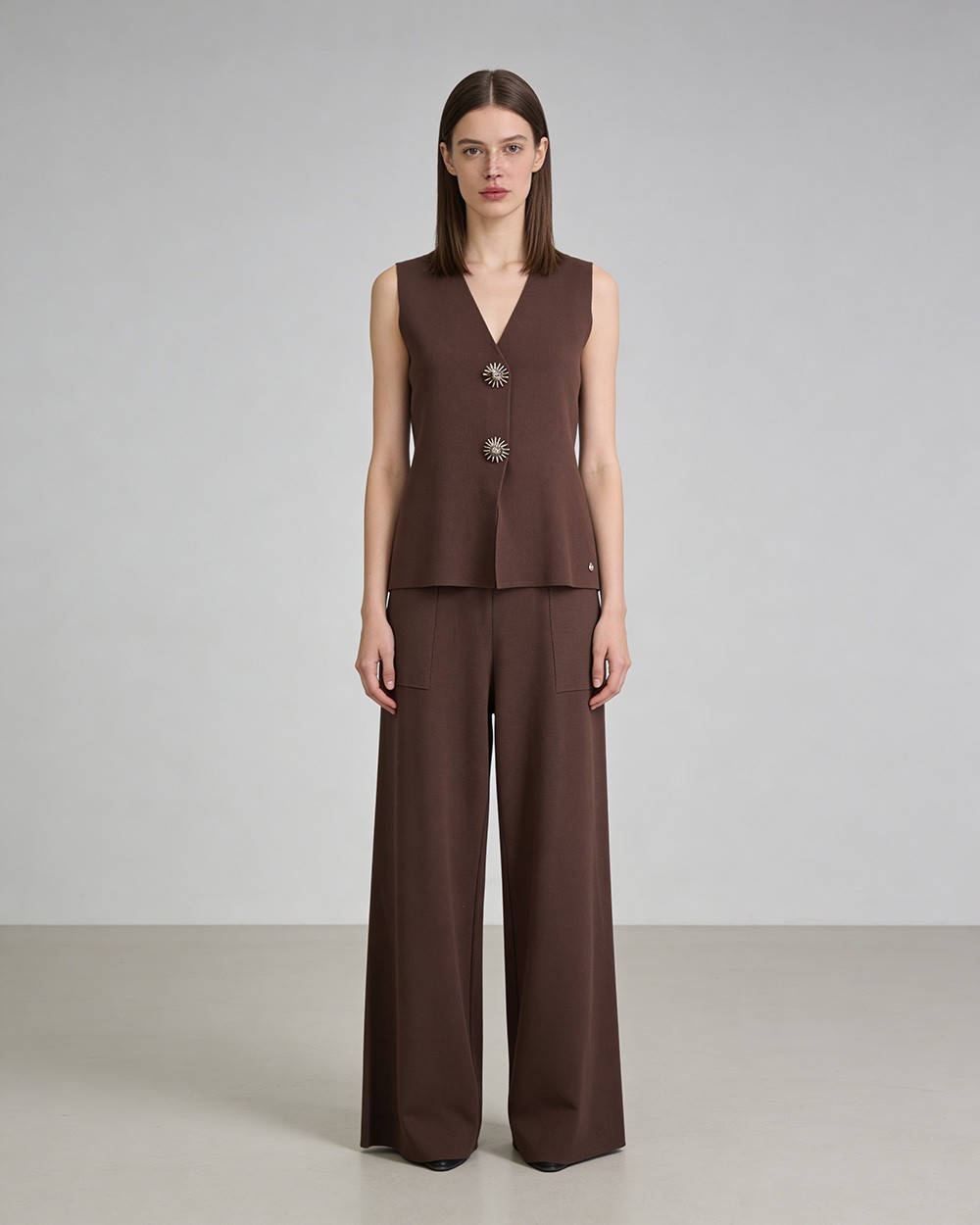 Set coordinato con gilet e pantaloni larghi.
