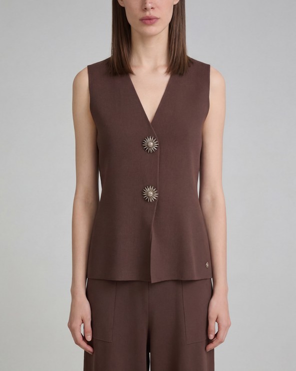 Gilet con scollo a v. Chiusura frontale con bottoni gioiello.