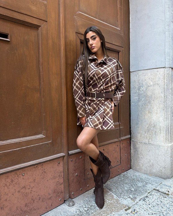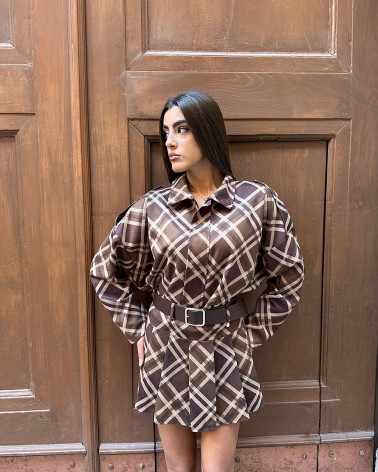 Giubbino cropped oversize con fantasia a quadri. Colletto a revers e maniche lunghe. Dettaglio di arricciature. Chiusura frontale con cerniera.