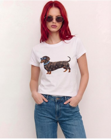 T-shirt con collo rotondo e maniche corte. Dettaglio di stampa sul davanti.
