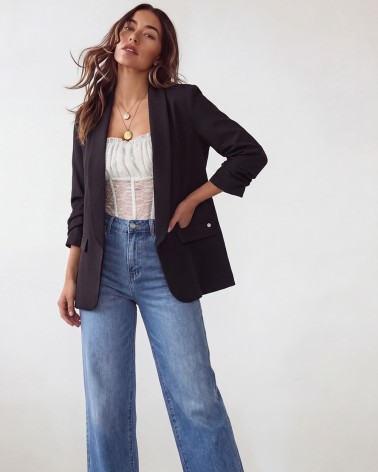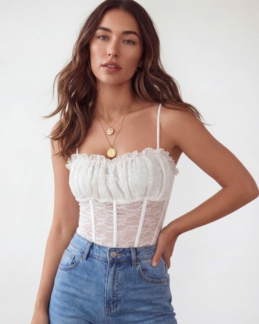 Top semitrasparente con bretelle regolabili. Coppe foderate. Orlo asimmetrico.