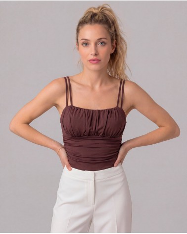 Top in tessuto elasticizzato con bretelle sottili. Coppe foderate. Orlo asimmetrico. Dettaglio di arricciature.