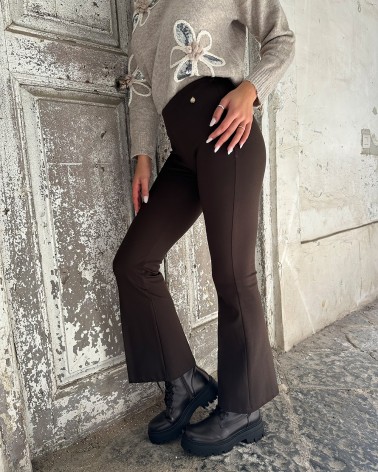 Pantaloni a zampa tinta unita. Vita elasticizzata.